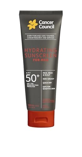 Cancer Council SP50 Hydrating Sunscreen for Men 100ml – Daily Sun Block with Broad Spectrum UVA UVB Sweat Water Resistant Non-Greasy
