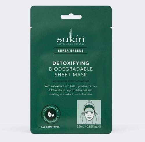 3 PACK OF Sukin Super Greens Detoxifying Biodegradable Sheet Mask 25ml