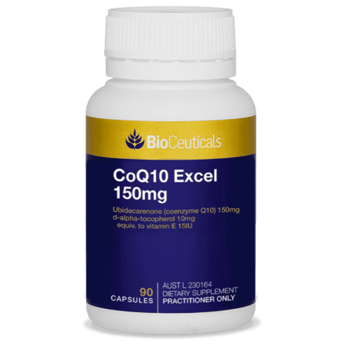 BioCeuticals CoQ10 Excel 150mg – Helps support energy production and maintains energy levels. Coenzyme Q10 also helps maintain cardiovascular system health. Vitamin E is included to support healthy cardiovascular system function and help maintain healthy cholesterol.