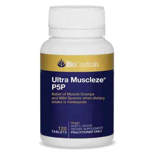 BioCeuticals Ultra Muscleze P5P contains UltraMag magnesium and active vitamin B6. Magnesium assists with the relief of muscle cramps and mild muscle spasms when dietary intake is inadequate. Magnesium also supports muscle function, bone health, nerve conduction and cardiovascular system health. Both magnesium and vitamin B6 support energy production and nervous system function, as well as relieving fatigue. Vitamin B6 aids in the synthesis of neurotransmitters and supports a healthy stress response in the body.