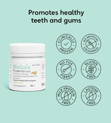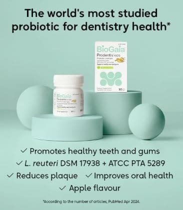 BioGaia Prodentis Lozenges is a daily oral probiotic for healthy gums and teeth. Just one melt-in-your mouth lozenge per day, it contains two high-quality, patented bacterial strains that work synergistically to improve oral health.
