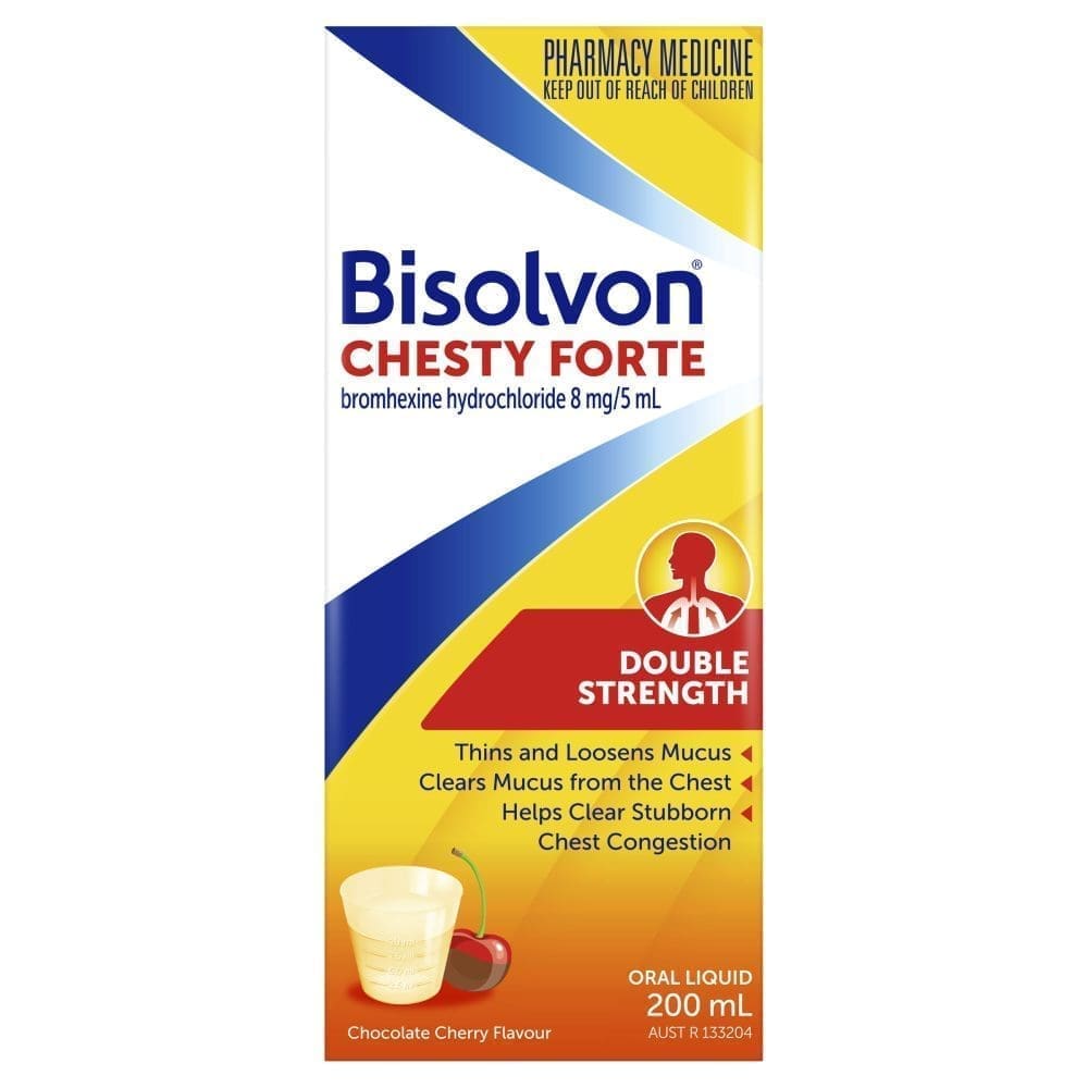 • Bisolvon Chesty Forte Liquid thins loosens and clears mucus from the chest.