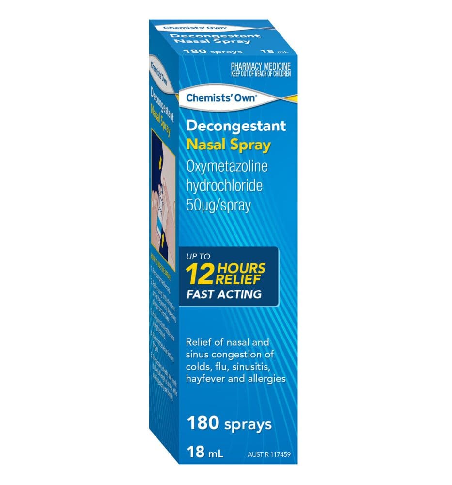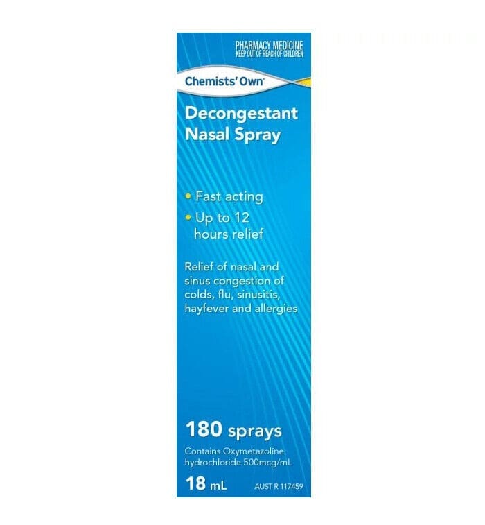 • Chemists Own Decongestant Nasal Spray for temporarily relieves nasal & sinus congestion associated with cold, flu, hayfever, sinusitis & allergies.