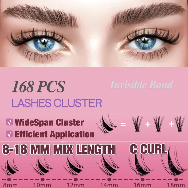 Premium Light-Weight & Born Soft Fibers: Experience ultimate comfort with premium lightweight and “born soft” fibers; made from shape-memory PBT materials, ensuring no kinks and maintaining a stable curl for natural & comfortable wear all day long. Awesome Manga Look & Ultra-Thin Invisible Band: Stylish and charming, features a 0.05mm ultra-thin invisible band; provides a soft, comfortable fit that seamlessly blends with natural lashes, creating a captivating wet manga effect Efficient Application with Fewer Clusters: Achieve a full look with just 10-12 clusters per application thanks to our wider band design; saves time and simplifies the process compared to 30D or 40D needed 20-28pcs. Holiday-Ready Lashes – 150 Hours of Glamour: Perfect for holidays and extended wear, COSMOLAB lashes offer up to 150 hours of long-lasting beauty; stay flawless from beach days to festive nights, letting you focus on making memories. Value-Packed with Long-Lasting Use: Each box includes 168 lash clusters, providing enough for 10-14 full applications; with each set lasting up to 7 days, enjoy beautifully enhanced lashes for up to 100 days per box. Superior Bond & Seal: Waterproof and sleep-safe, our bond and seal ensure lashes stay firmly in place even while you sleep; non-irritating, easy to apply, reduces clumping, and lasts up to 150 hours with proper care; remover works in 10 seconds.