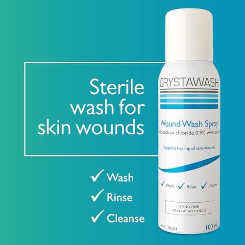 Crystawash Wound Wash Spray – Sterile Saline Irrigation Spray To Wash Minor Skin Wounds Cuts Grazes And Scrapes First Aid Wound Cleaning Spray 100ml Bottle