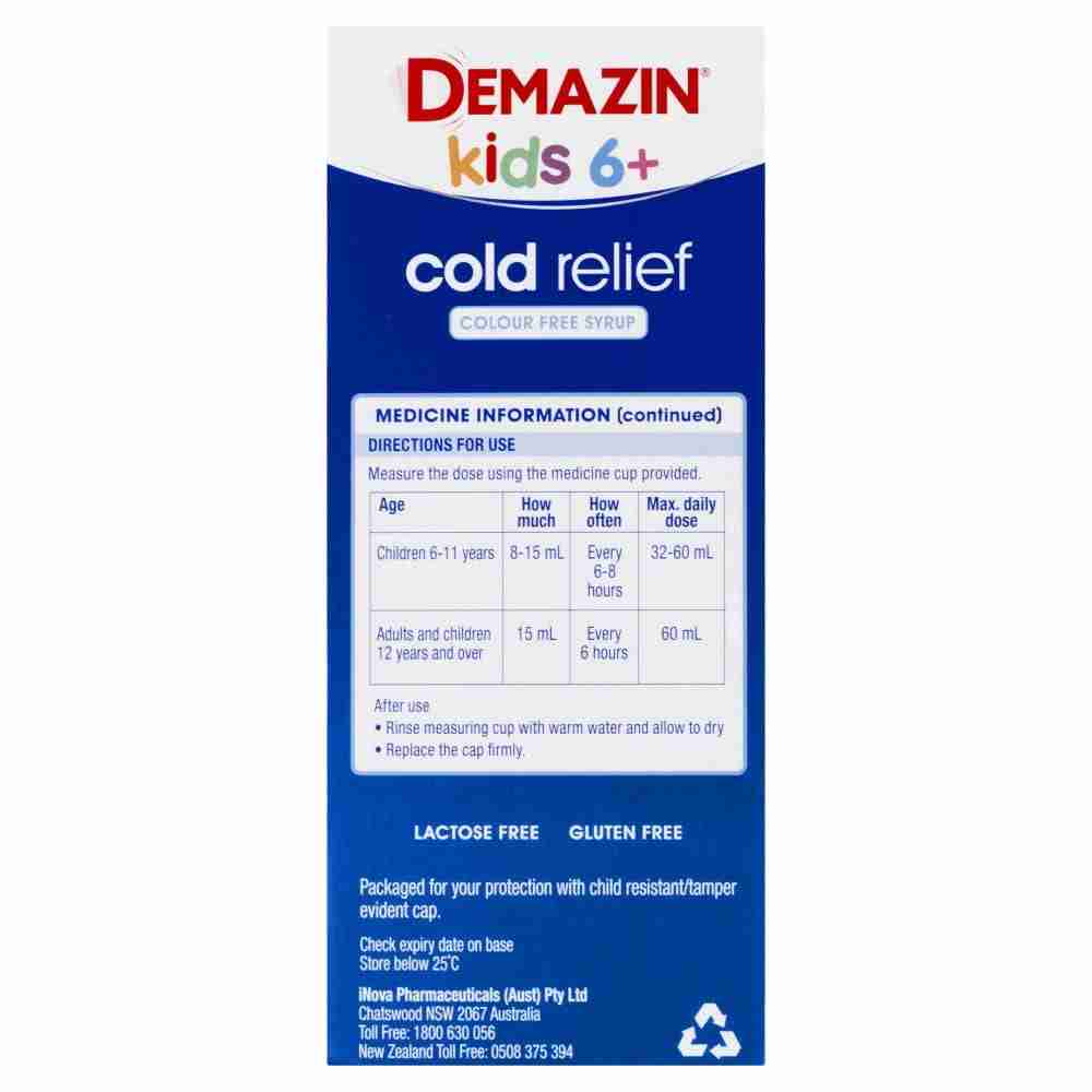 Demazin Kids 6+ Cold Relief Colour Free Syrup 200ml