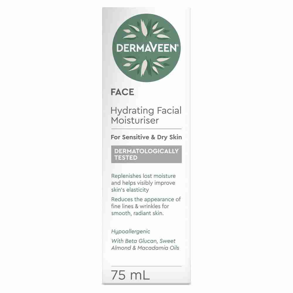 • DermaVeen Hydrating Facial Moisturiser is specifically formulated with natural Colloidal Oatmeal to nourish, protect and renew dry & sensitive skin.