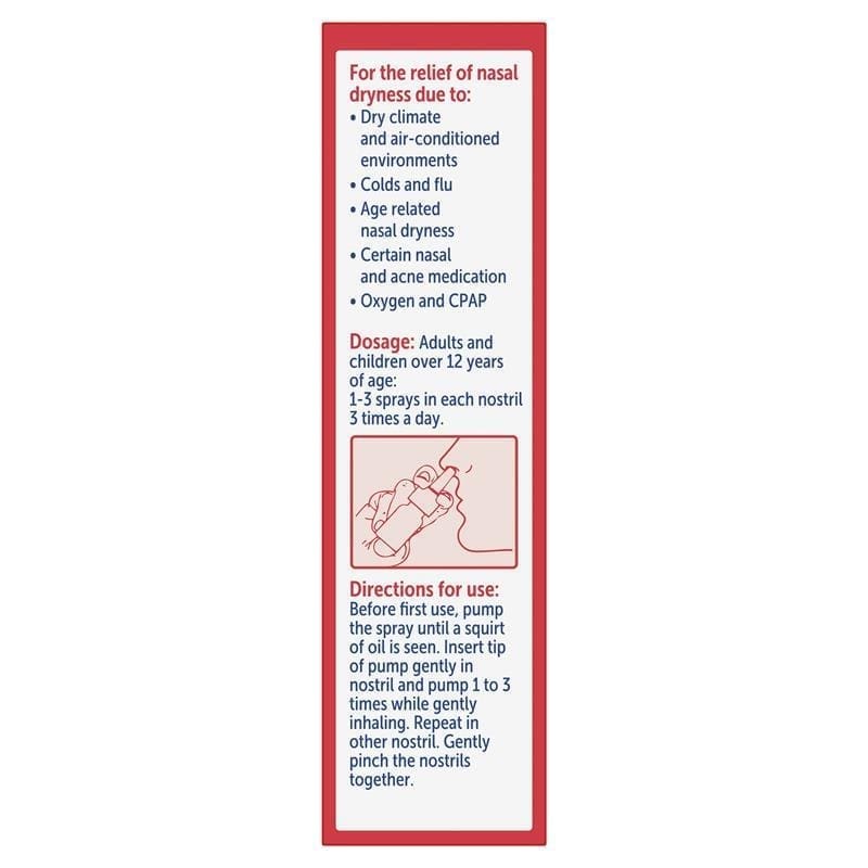 • Before first use, pump the spray until a squirt of oil is seen. Insert tip of pump gently in nostril and pump 1 to 3 times while gently inhaling. Repeat in other nostril. Gently pinch the nostrils together.USAGE ADVICE