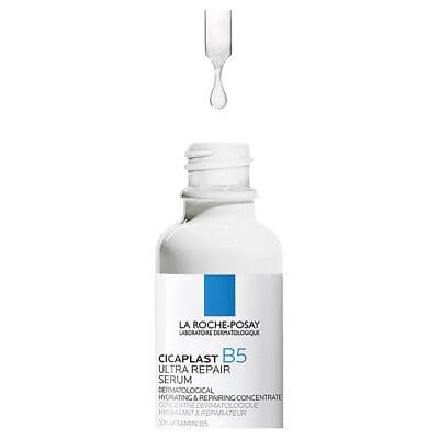 • The Cicaplast B5 Ultra Repair Serum is La Roche Posay’s first dermatological serum with 10% Vitamin B5.With an efficient hydrating formula, the Cicaplast B5 Ultra Repair Serum has been specifically developed for dry skin prone to redness, skin tightness or discomfort. When used daily, the dry skin serum helps to hydrate and maintain the skin moisture barrier.Enriched with a highly concentrated humectant Vitamin B5 to help increase hydration and reduce trans-epidermal water loss, the skin repair serum formula also contains Hepes to help stimulate skin renewal, reinforce the moisture barrier, and comfort skin. The formula includes ingredients that are known to support the skin against everyday environmental aggressors like air pollution, temperature changes, low humidity and dryness. It also helps with topical irritations such as over-use of active ingredients and superficial skin procedures. The combination of hydrating and repair ingredients is also beneficial for skin impacted by lifestyle changes (lack of sleep, stress, poor diet).*La Roche-Posay have formulated this Cicaplast serum for dry and sensitive skin, however it is ideal to use on all skin types.*Use the skin repair serum daily for best results.*Suitable for use on post-superficial skin procedures on face.The La Roche-Posay Cicaplast serum for dry skin has been dermatologically tested to ensure suitability of the serum for sensitive skin types. The formula is hypoallergenic, fragrance free and non-comedogenic making it suitable for all skin types that need the added hydration and skin moisture barrier support.TEXTUREThe Cicaplast B5 Repair Serum Is:*Lightweight*Fast absorbing*Non-sticky finish*Silky and Non-greasy texturePlease note, the skin repair serum forms a protective film on the skin upon application, however, can ensure a non-sticky lightweight feel to the skin.KEY INGREDIENTSRepairing
