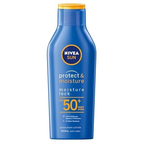 NIVEA Sun SPF 50+ Protect & Moisture Moisturising Lotion 400ml Ingredient listings for our products might change over time with new innovations. Whilst we try to update this as quickly as we can, it’s best to check the ingredients on your packaging to ensure it’s suitable for your needs.