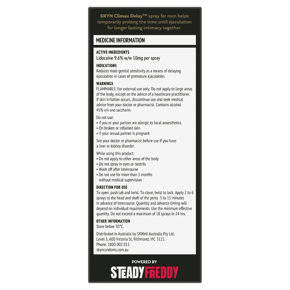 • FLAMMABLE. For external use only. Do not apply to large areas of the body, except on the advice of a healthcare practitioner. If skin irritation occurs, discontinue use and seek medical advice from your doctor or pharmacist. Contains alcohol 45% v/v and saccharin. Do not use