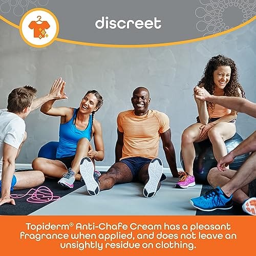 Topiderm Anti-Chafe Cream has a pleasant fragrance when applied, and does not leave an unsightly residue on clothing.