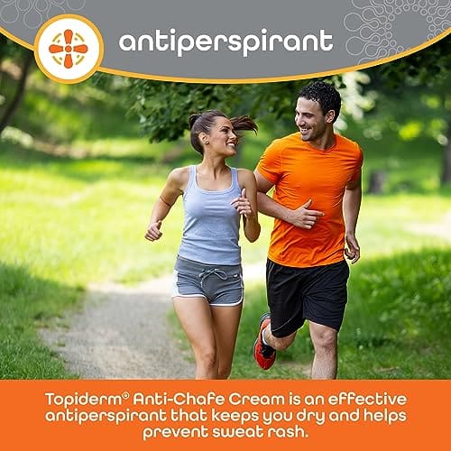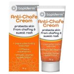 Topiderm Anti-Chafe Cream protects the skin and helps prevent redness and soreness caused by sweating and rubbing by providing a friction barrier to help prevent chafing.
