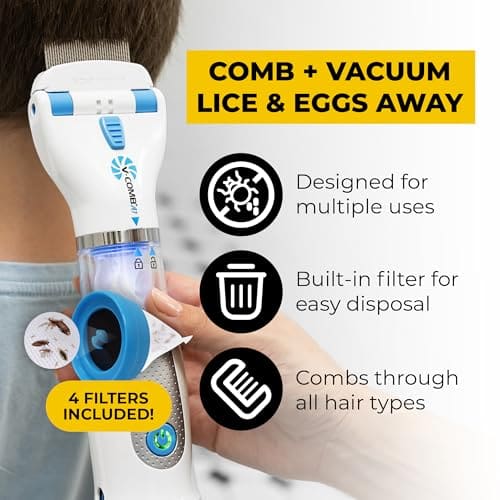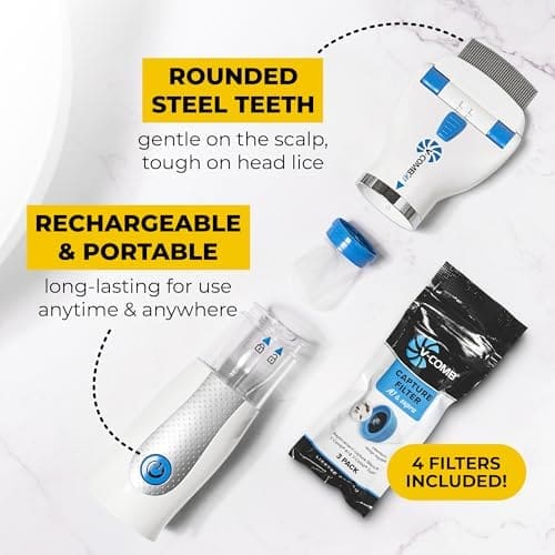 V – Comb A1 Rechargeable Chemical – Free Head Lice Eggs Suction Comb W 4 Capture Filters