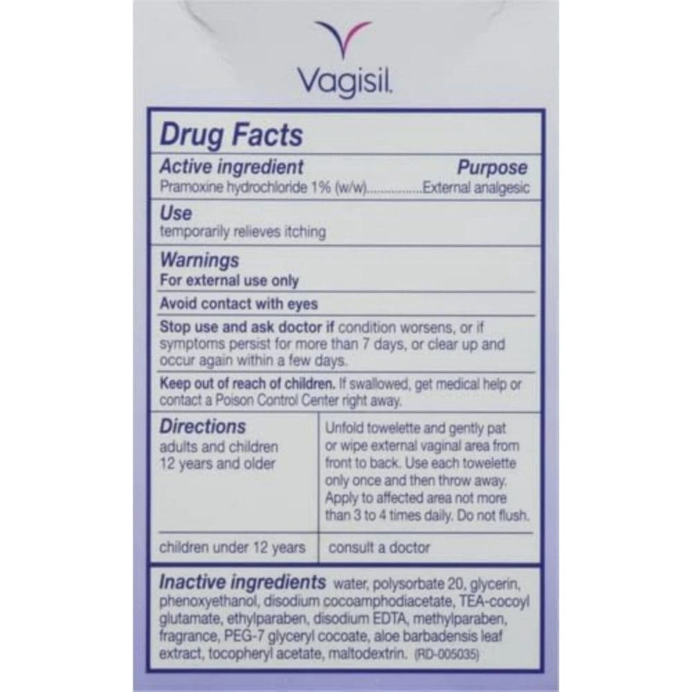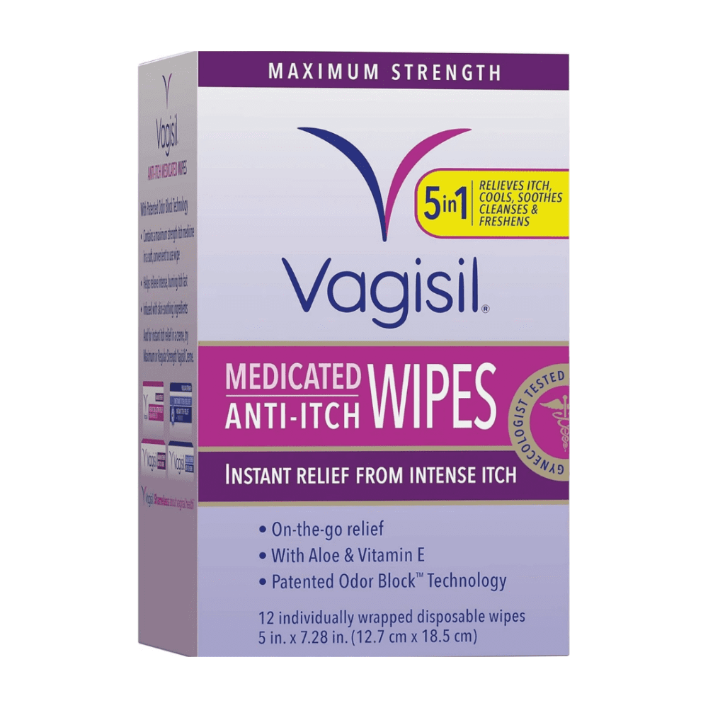 All Vagisil Wipes are especially designed for the unique needs of intimate skin, gynaecologist tested and gentle enough for daily use. Only Vagisil Itch Relief Intimate Wipes give fast comforting relief from itch while also creating a protective barrier to help prevent further itch and irritation. 12 individually wrapped disposable wipes.